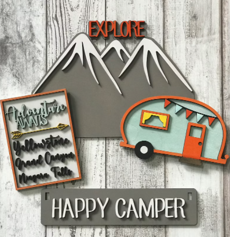 Happy Camper l Interchangeable Wagon/Crate Shelf Sitter
